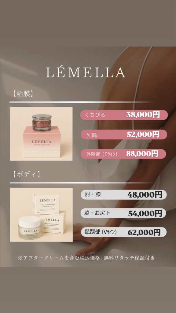 各部位ごとに専用のアフタークリームが含まれた税込表記の価格となります。